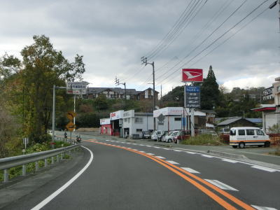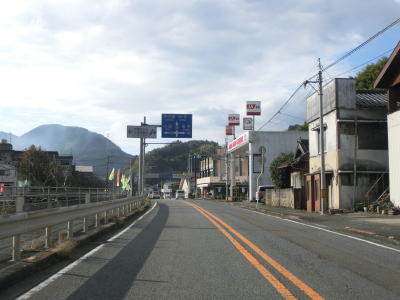 | 旧道と思われる町道との交差点を通過して右にカーブした先で愛媛r243田中橋交差点を通過する。交差点付近から内子町の中心部に入るため周辺の家屋が増える。左にカーブしながら5%の勾配を上った後に町道の跨道橋をくぐる。その後の緩やかな勾配を下っているとR379・R380内子交差点を通過する。交差点そのものは右折できないが立体交差点のため左折して連絡道路を走れば右折方向にも左折方向にも行く事は可能である。松山市役所前交差点でも交差していたR379だが、この交差点が終点であり起終点どちらもR56との交差点という事になる。松山市役所前交差点と内子交差点の距離はR56が約40km、R379が約52kmである。また、案内標識に表記されていないR380はR56大洲方面とR379に重複している。 | ||