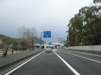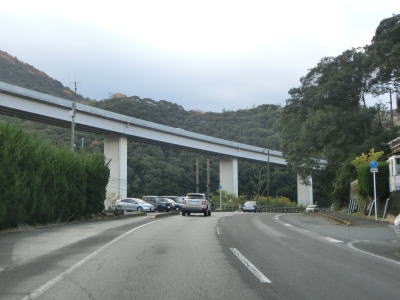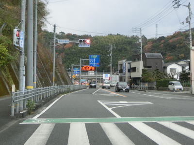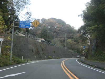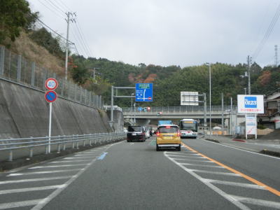 | 愛媛r274交差点を過ぎてからも上り勾配が続いており、海から離れて内陸へと進む。並走しているJR予讃線も同様に内陸へと向かっている。ゆずり車線が設置されているが、延長は300m程で登坂車線として機能している。JR予讃線の跨線橋の直後にゆずり車線が終わり、その後に知永越と呼ばれる峠を越える。 | ||