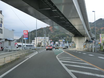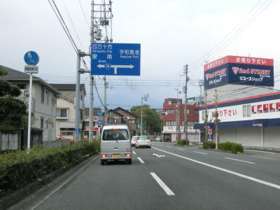 | 152.沿線に商業施設が立ち並ぶ | 153.愛媛r37寄松交差点 | 154.E56松山道・宇和島南ICを左折 |