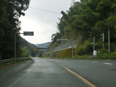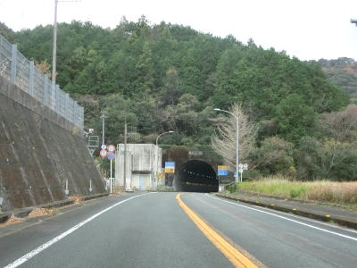 | 愛媛r46交差点からはE56松山道と並走しながら緩やかな勾配を上って行く。4.5mの制限高バーの下を通った先で松尾トンネルに入る。全長は1710mとR56では最も長いトンネルであり、平成の大合併以前は宇和島市と津島町の境であった。 | ||