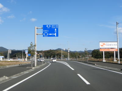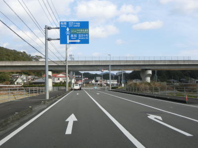 | 高知r329交差点を通過してから程なくしてR56/E56高知道の黒潮拳ノ川ICを通過する。四万十市方面には行けないと案内されている通り、四万十IC〜黒潮拳ノ川ICの間は未供用である。また、この区間も無料で通行する事ができ、高知道がバイパスと表記されている案内標識も設置されている。 | ||