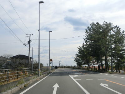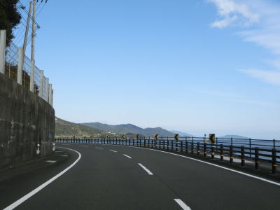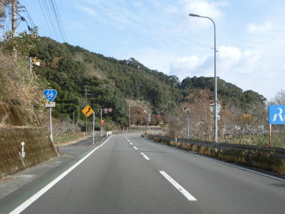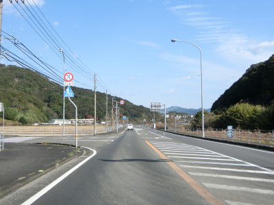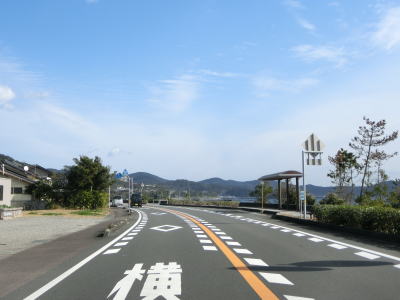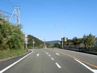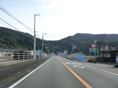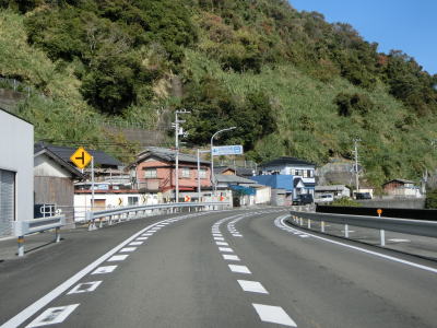 | 旧道らしき町道との交差点を通過した後に湊川を渡って道の駅「ビオスおおがた」の前を通る。道の駅の直後に左カーブを曲がってからは海沿いを走る。千鳥ヶ浜が終わると同時に少し勾配を上って標高を上げ、アップダウンしている2車線道路を快走する。 | ||
