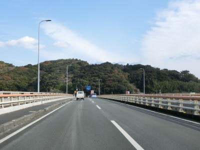 | E56中村宿毛道路と中筋川を挟むようにして東の方角に向かって淡々と走る。これまでと同様にカーブは多いが勾配はほとんどなく交通量が少ない事もあって走りにくさはさほど感じない。 | ||