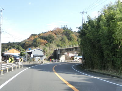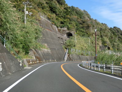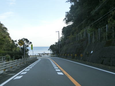 | アップダウンを繰り返す海沿いの2車線道路を快走していると高知r55交差点を通過する。上川口集落を通り抜けるとやや急な勾配を上って峠のような場所を越える。内陸を通っているような風景だが、引き続き海岸に近い場所を通っている。 | ||