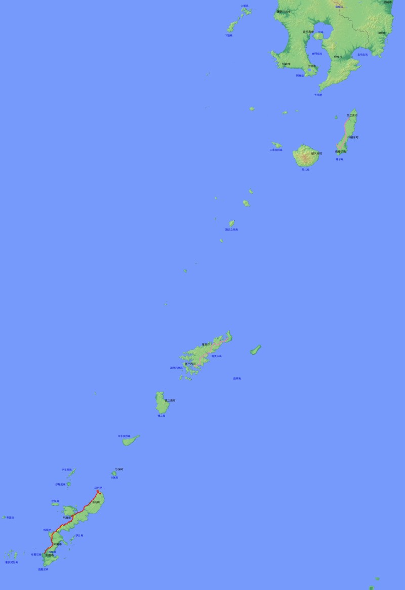 | 主な経由地 | 鹿児島県鹿児島市… …鹿児島県西之表市〜南種子町… …鹿児島県奄美市〜瀬戸内町… …沖縄県国頭村〜大宜味村〜名護市〜宜野湾市〜浦添市〜那覇市 |