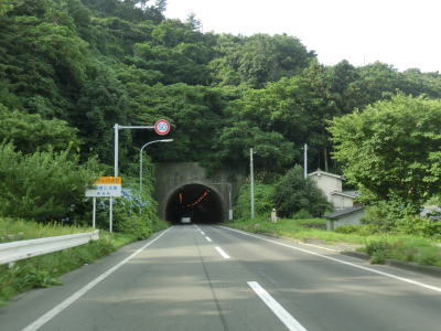 | 信号のない青森r28交差点から先もこれまでと同じような走りやすい2車線道路が続いている。すぐ西側にJR五能線が敷設されているが、非電化で線路しかないためともすれば並走している事を忘れてしまいそうになる。r28交差点から程なくして森山トンネルをくぐる。起点の青い森公園前交差点から100km以上走って初めてのトンネルである(青森市・五所川原市境はスノーシェッド)。森山トンネルを抜けると十二湖駅のすぐ傍を走り抜け、十二湖や日本キャニオンに至る青森r280との交差点を通過する。 | ||