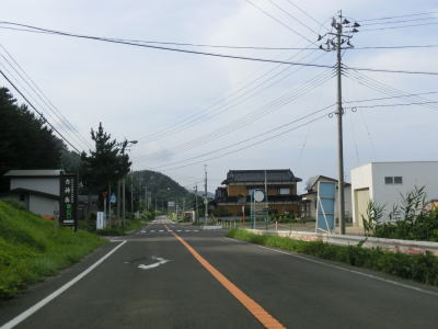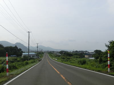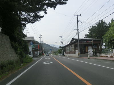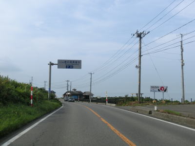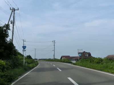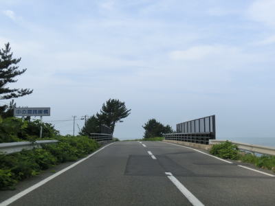 | 中の潤跨線橋を越えると五能線と東西を入れ替えて海沿いを南下する。緩やかなアップダウンとカーブの快走路を走っていると青森県側最後の集落の板貝集落を通り過ぎる。海側に建っている土産物店が最後の建物である。 | ||