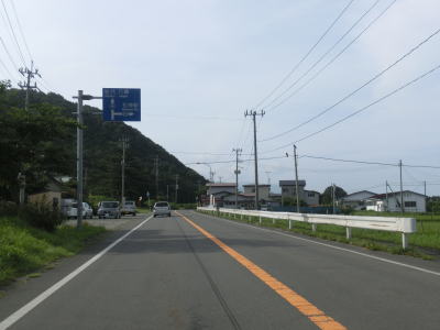 | 青い森公園前交差点から約124km走ると須郷岬の県境を通過して秋田県八峰町に入る。県境からすぐに五能線のガードをくぐる。さらに走ると県境から約1.2kmで道の駅「はちもり」を通過する。秋田県で最初に現れるのは集落ではなくこの道の駅である。シーサイドを走るドライブルートに当たるためか、周囲には何もない割に駐車場には多くの車をが停まっていた。 | ||