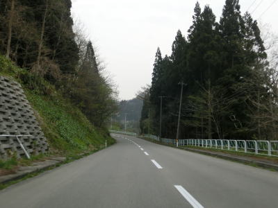 | 66.交通量は意外に少なかった | 67.ヘアピンカーブで標高を上げる | 68.路肩の流水も雪解け水 |