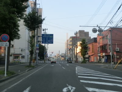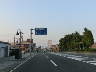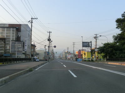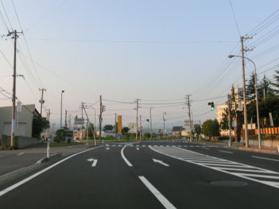 | R103の起点はR4やR7を始めとする青森市を走る複数の国道が交差している青い森公園前交差点、ではなく約1.0km東のR4・R45国道NTT交差点である。青森駅や青森県庁とはやや離れているが青森市役所に近い位置にあり、交差点南東にはNTTの局舎(電波塔)がランドマーク的な役割を果たしている。そんな風景の中でR103に進むと4車線道路で始まっており、都市部の中心部かつ100番代国道としては順当な始まりと言える。早朝なので交通量が少ないように見えるが、昼間であればR4ともども交通量の多い場所である。緩やかなS字カーブを通過してすぐに八甲田大橋で青い森鉄道をオーバーパスする。八甲田大橋の前後も緩やかなS字カーブを描いている。 | ||