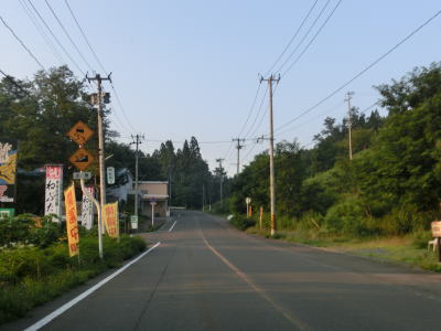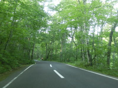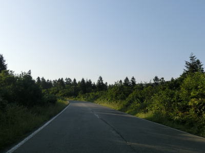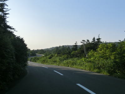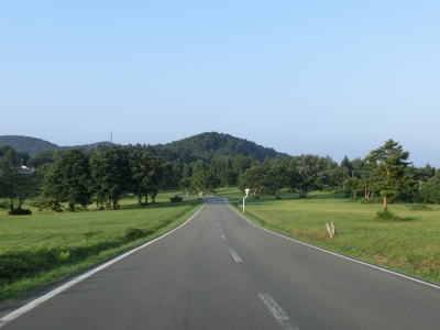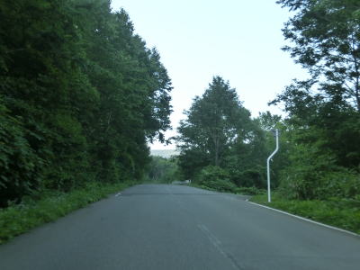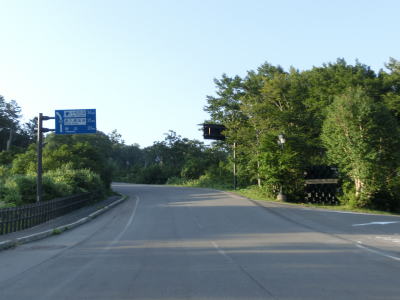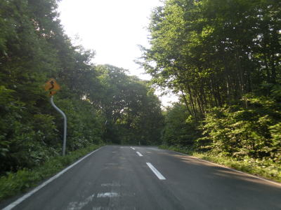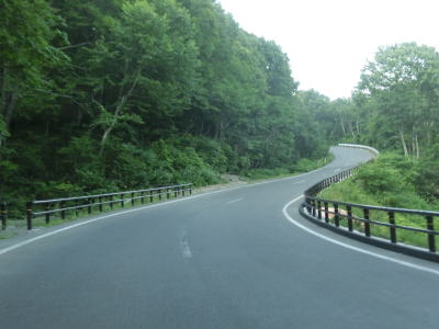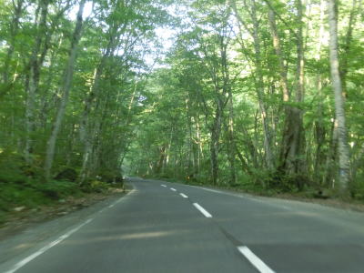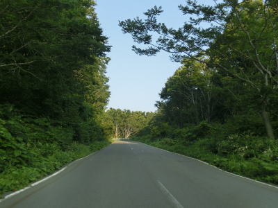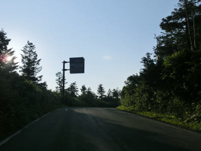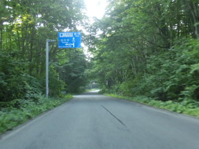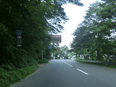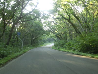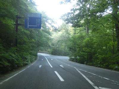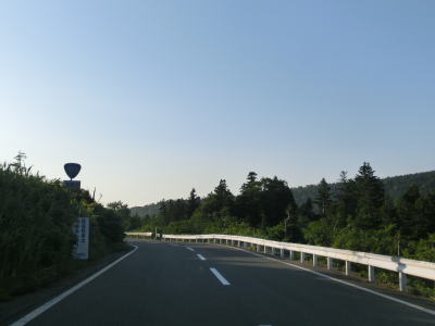 | 笠松峠から東も道路状況としてはこれまでと変わらないが景色は若干良くなった印象である。峠から約600m東の睡蓮沼周辺は八甲田山系を眺められるビューポイントという事もあって道路脇には路上駐車をやめる旨の看板がいくつか立てられている。走行日は夏休み期間中であったが、早朝のため駐車車両は1台もなかった。睡蓮沼から先は緩やかな下りが続いている。いくつか急カーブもあるが全て2車線確保されているため走りやすい。 | ||