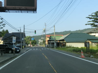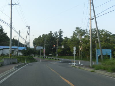 | 傘松峠から緩やかな勾配を約5.0kmに渡って下っていると、右カーブの先でR394谷地交差点となる。信号がなく国道同士の交差点に見えない佇まいから案内標識がR394が分岐している事に気付かないかもしれない。R103のトレースであれば優先道路となっている交差点を直進するだけである。 | ||