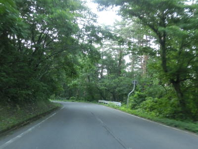 | 八甲田ロープウェーの山麓駅を過ぎてからは標高が上がってきているため、視界が開ける場所をいくつか通過する。等高線に沿うようにしているためカーブは多いものの勾配は比較的緩やかで、上りだけもしくは下りだけではなくアップダウンしている。この区間に青森r122との交差点を通過するが、案内標識どころかソトバすらもなく地図やナビを見ない限りは県道が交差しているとは思えない様子である。それもそのはず、r122の下湯平成湖〜R103の間は未舗装の狭路、所謂険道なのでわざわざ案内する必要がないとの判断だろう。 | ||