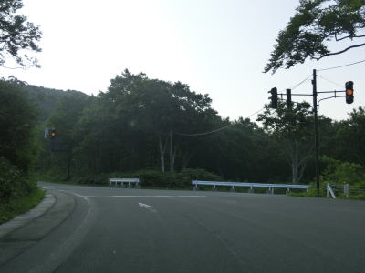 | 樹海の中で青森r40との交差点を通過する。信号がないせいもあって案内標識が立っていなければ県道が交差しているとは思わないだろう。r40交差点以降も急な勾配でカーブが多い状況を走る。八甲田スキー場やロープウェーの山麓駅の近くを走りながら八甲田山の西側を走る。 | ||