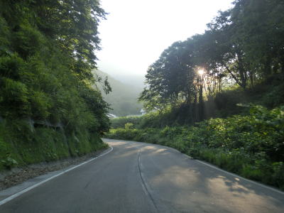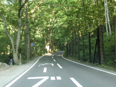 | モヤヒルズの入口を過ぎて程なくして冬期閉鎖用と思われるゲートを通過する。センターラインが見えないので道幅が狭いように思えるが、消えかけているだけで一応は2車線道路である。やや急な上り勾配に小刻みなカーブが連続しているが、交通量が少ない時間帯であればそこそこ快適に走る事ができる。鬱蒼とした木々に視界を遮られいる場所がほとんどだが、岩木山展望所からはその名の通り岩木山を望む事ができる。 | ||
