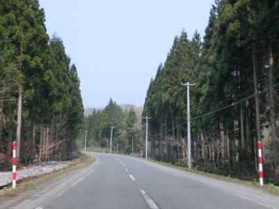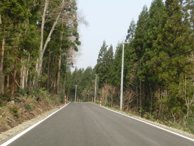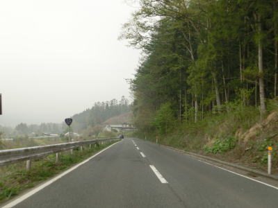 | 田子橋からの上り勾配を終わると緩やかな勾配を下り、旧道と思われる町道との交差点を過ぎると平坦な状態になる。山裾の2車線快走路を淡々と走る。集落が断続的に続いているが、家屋が密集している集落は多くない。 | ||