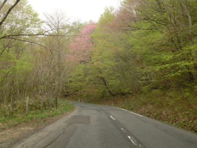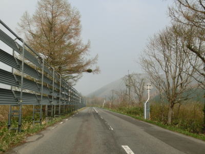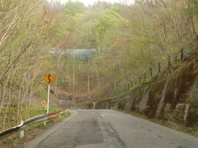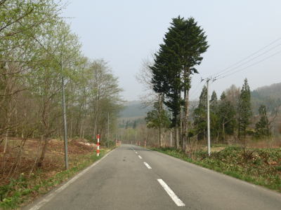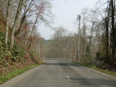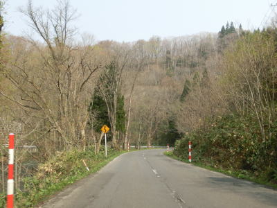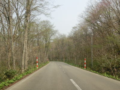 | 103.大湯川沿いを快走 | 104.センターラインのない区間もあるが快走路と言える | 105.道路の外に残雪が見える |