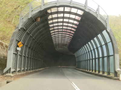 | 右ヘアピンカーブを曲がった後に1つ目のスノーシェッドを通過する。シェッド内でカーブしており、その曲線半径は小さい。スノーシェッドを出て少し走ると左のヘアピンカーブを曲がり、さらに走った後に右のヘアピンカーブを曲がる。 | ||