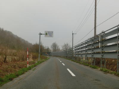 | 幅員減少の警戒標識が現れた直後に小さな橋を渡る。その橋が幅員減少箇所だが、乗用車であれば何の問題もなく通過できる幅である。幅員減少箇所から少し走ると町境を通過して田子町に入る。田子町に入ってからは歩道付きとなり走りやすさが向上する。 | ||