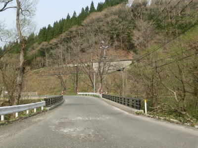| 県境から約2.6kmで秋田県側の最初の集落である大清水集落を通過するが、既に無人となった集落でおそらく農作業の際に一時的に人がいる程度と思われる。大清水集落を過ぎると右カーブを曲がり6つ目のスノーシェッドをくぐる。小刻みに蛇行する大湯川の東側を走っていると大渡橋を渡って西側に移ってさらに北上する。 | ||