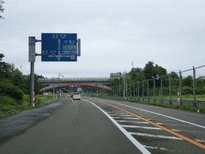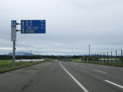 | 2車線道路を快走しているとE7秋田道の鷹巣ICを通過する。この区間のE7秋田道は無料で通行する事ができるが、秋田方面はインターチェンジ3つ先の蟹沢ICまでしか供用されていない(2021年8月時点)。 鷹巣ICを過ぎて緩やかな左カーブを曲がっていると七太田表交差点を通過する。ここで交差している市道を道なりに北上すると鷹巣橋を経て北秋田市の市街地に行く事ができる。さらに緩やかな右カーブを曲がるとR285・秋田r324小森交差点を通過する。右折してr324を走るとE7秋田道の大館能代空港ICがある。空港には道の駅が併設されており、駐車場とターミナルは兼用である。 |