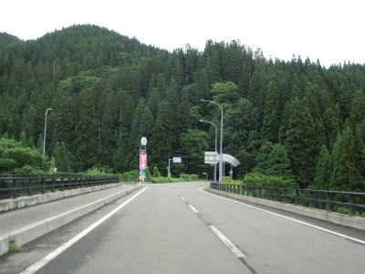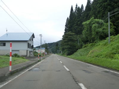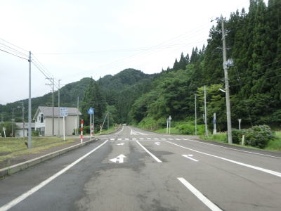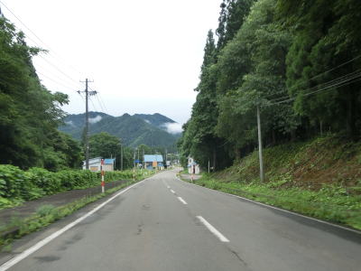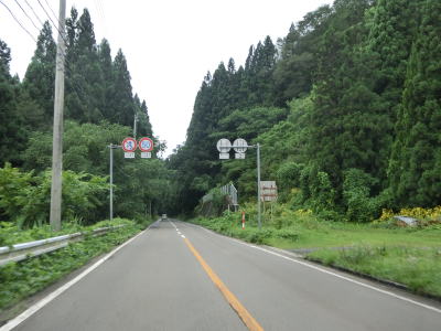 | 多少のアップダウンはあるものの走りやすい2車線道路が続いている。松栄集落を過ぎると4%とやや急な勾配を下るが、直線のため走りにくさは一切感じない。山間部ながら幹線道路のため交通量はやや多い。 | ||