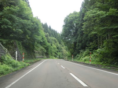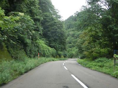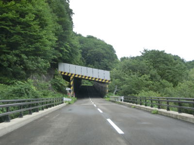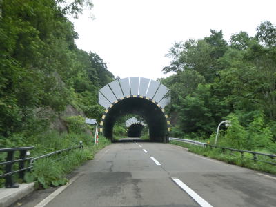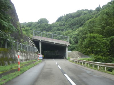 | 秋田r308交差点を過ぎてすぐに比立内トンネルをくぐり、繋沢の谷筋を走る。勾配もカーブも緩やかだが車線幅が若干狭く快適に走れるとは言い難い。片側交互通行規制が敷かれている場所があったが、スノーシェッドを建設するためであった。 | ||