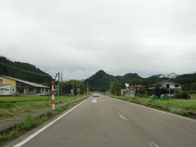 | 秋田県北秋田市の中心部の北東に位置するR7大堤交差点がR105の終点であり、ここから内陸部を通って秋田県南西の日本海に面している由利本荘市に向かう。R105を走り始めると車線幅の広い2車線道路で道路状況としては申し分ない。快走路を南下していると稲穂ロードという農免農道との交差点を通過する。 | ||