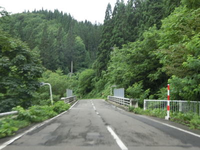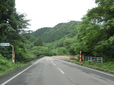 | 萱草大橋で阿仁川の左岸に移るが、並走している秋田内陸縦貫鉄道も大又川橋梁で川を渡っており列車の撮影ポイントのようである。萱草大橋から程なくして萱草で陸橋で秋田内陸縦貫鉄道の上を通過して阿仁川の左岸を走る。 | ||