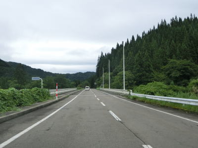 | 秋田内陸縦貫鉄道と阿仁川を挟むようにして上流に向かって走る。川沿いの割にアップダウンが多いもののセンターライン付きの2車線道路のため走りにくさはまったく感じない。 | ||