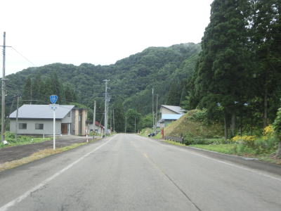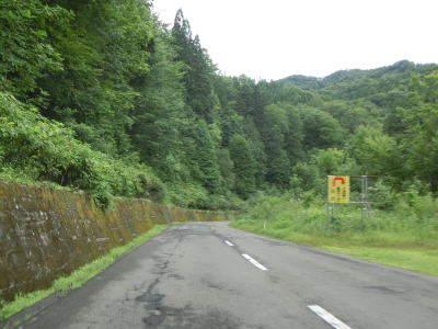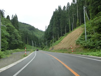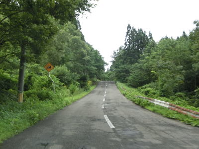 | 直線道路から左に大きくカーブすると上り勾配となって草峠を越える。集落が途切れてから峠までの間は線形が改良されていたが、元々狭かった訳でも急カーブがあった訳でもない。峠を越えてからの勾配とカーブも緩やかである。 | ||