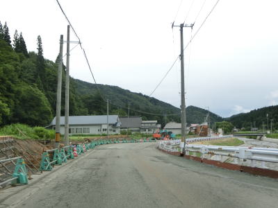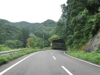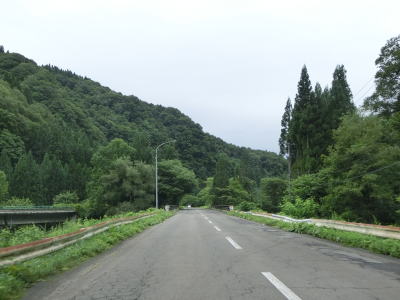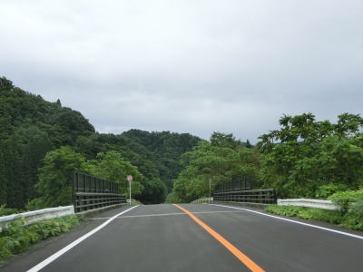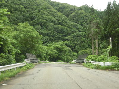 | 2つ目のスノーシェッドをくぐった直後に跨線橋で秋田内陸縦貫鉄道の上を通って右カーブを曲がって上桧木内橋を渡る。細野橋で右岸に戻った後に秋田内陸縦貫鉄道のトンネルの上を通過する。蛇行している桧木内川に沿っているためカーブは多いが勾配が緩やかなので走りにくさはさほど感じない。下中里橋、六郎沢橋、木狭間橋と次々に橋を渡るが、全て桧木内川に架けられている。 | ||