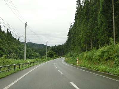 | 秋田r321交差点の先の右カーブを曲がると浦子内跨線橋で秋田内陸縦貫鉄道の上を通る。左通駅の西を通り過ぎるとスノーシェッドをくぐり、桧木内川の右岸を南下する。100番台の国道にしては交通量は少ない。 | ||