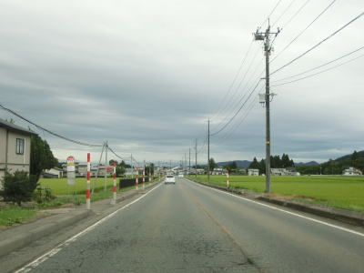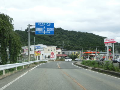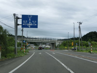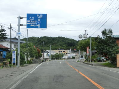 | 道の駅以降は平坦でカーブの少ない2車線道路を走る。交通量は増えているが信号機付きの交差点が少ないため流れは比較的良好である。秋田r67交差点を通過して少し走ると右カーブを曲がって秋田r261交差点を通過する。 | ||