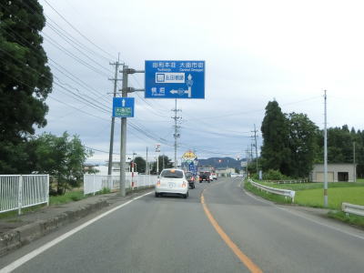 | 平坦な直線道路を走っていると秋田内陸縦貫鉄道のガードをくぐる。羽後太田駅の西を通り過ぎて緩やかな右カーブを曲がった後にR46真木口交差点を通過する。案内標識に角館バイパスと表記されているが、それに対する現道はR341に降格しており現在のR46はバイパスしかルートが存在しない。 | ||