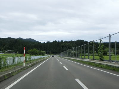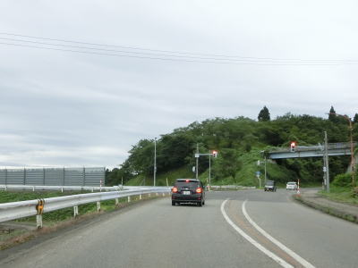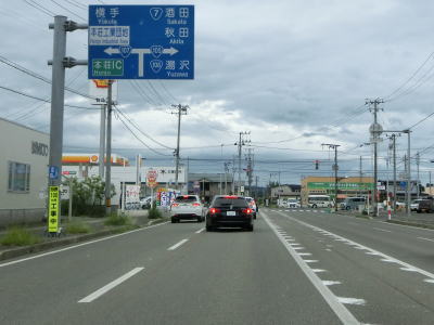 | 余目交差点からも走りやすい2車線道路を走っているとR105大曲西道路の下をくぐり、その先でE46秋田道の大曲ICを通過する。右折方向の市道を走ると山根ICに戻る。大曲西道路は伊岡ICが設置されているが、R105との接続はなく大曲ICに直結している。つまり、E47秋田道から大曲西道路に進むと伊岡IC、山根ICでは出られないため、大仙市街地の南の飯田ICが最初の出口となる。 | ||