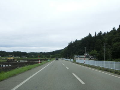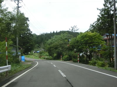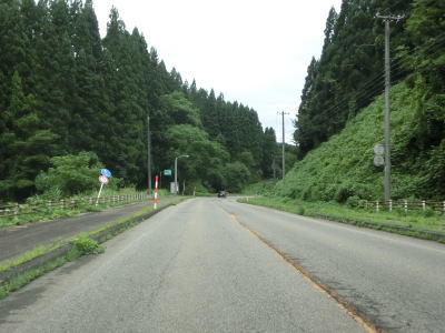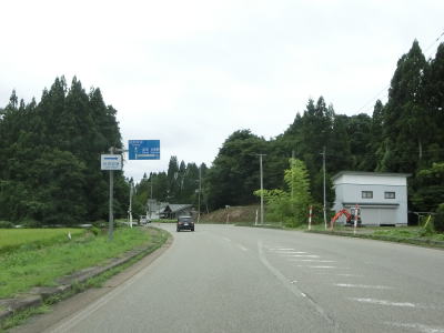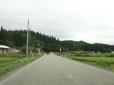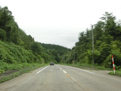 | アップダウンのある2車線道路を淡々と走る。交通量は少なく前走車の速度が遅くない限りはハイペースで走る事ができるだろう。出羽グリーンロードとの交差点を通過するが、案内標識に表記されていないが秋田r315が重複している。6%の勾配のアップダウンを繰り返しながら2車線道路を走る。集落も存在しているが、多くの家屋は旧道沿線にに建っており現在の国道沿いの家屋は少ない。 | ||