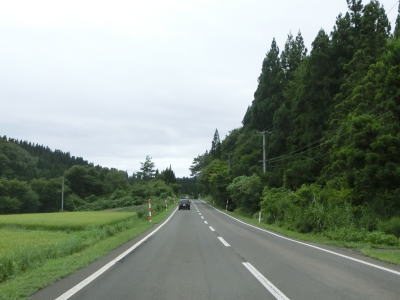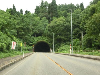 | 新田交差点からも走りやすい2車線道路が続いている。右カーブからは上り勾配となり、大内ダムへ向かう市道との交差点付近で峠に当たる部分を越える。しばらく下った後に再び上り勾配となって早坂トンネルをくぐる。 | ||