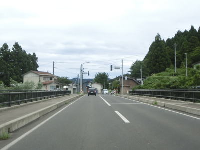 | 市道との交差点を過ぎると車線が増えて4車線道路になり、その状態で芋川橋を渡る。4車線道路で由利本荘市の市街地に向かって走っていると飛鳥大橋で子吉川を渡り、その先で市道との赤沼町交差点を左折する。直進すると羽後本荘駅の西側を通ってR105に行く事ができ、R7(水林交差点)に行くのであればその方が便利である。 | ||