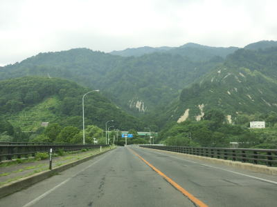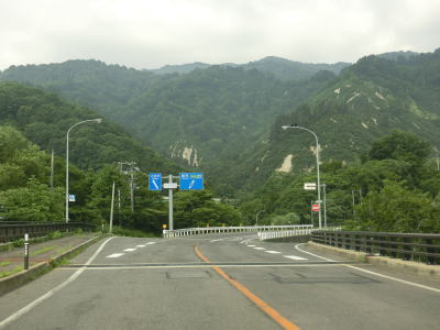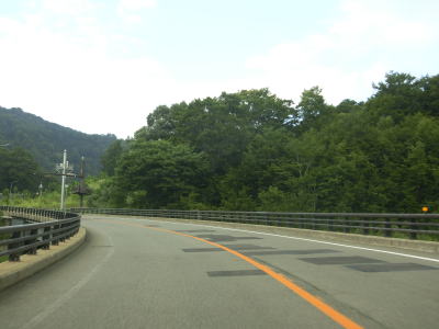 | 一部はコンクリート舗装だが、その部分にも補修痕は存在している。上楓沢橋を渡った後に2ヶ所目の登坂車線が設置されているが、延長は800m弱とさほど長くない。対面2車線道路に戻ると道行沢橋と田代沢橋を渡る。 | ||