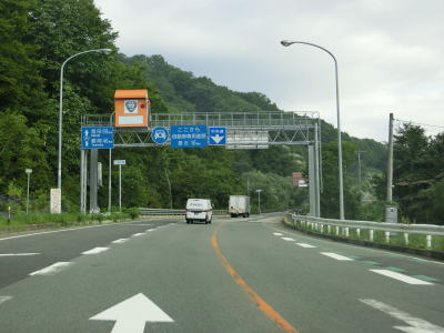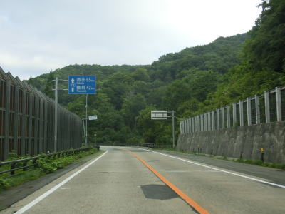 | 市道とのランプを過ぎてからも道路状況には特に辺から見られず、下り勾配の2車線道路が続く。岩管沢橋を渡った後に田麦川橋を渡り、左にカーブして牡丹餅沢橋を渡る。中台除雪ステーションと釣り堀の間を通過して左カーブを曲がる。 | ||
