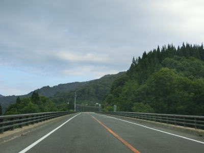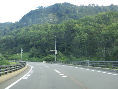 | 葦谷地沢橋や火打石沢橋、頭光滝沢橋、中の沢橋と次々に橋梁を渡りながらやや急な勾配を上って行く。山間部のバイパスとしては申し分のない道路状況と言いたいところだが、積雪地とあって路面に補修痕が多く、それに伴って凹凸も多めである。 | ||