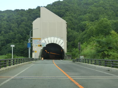 | 田代沢橋を渡り終えた直後に月山第一トンネルをくぐって鶴岡市に入る。延長2620mの長大トンネルで、その上を現道が4回通っている。トンネルを出て緩やかな右カーブを曲がると湯殿山道路に至る市道(現道との交差点の案内標識にはR112のおにぎりの表記あり)。との交差点を通過する。この道路があるおかげでR112の現道が通行止になっても湯殿山神社に行く事ができる。 | ||