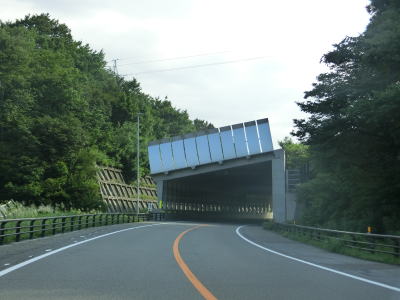 | 22.とりや沢スノーシェッド | 23.十座沢橋の南で自動車専用道路が終わる | 24.湯殿山スキー場は側道へ進む |
