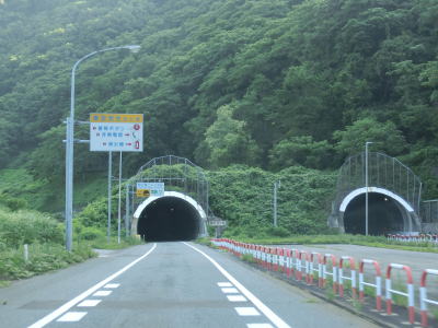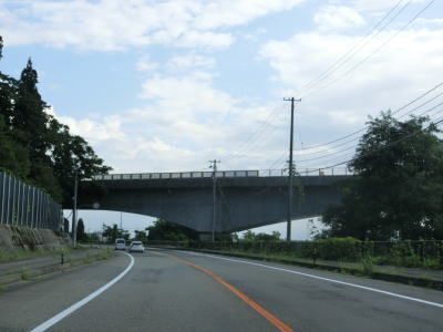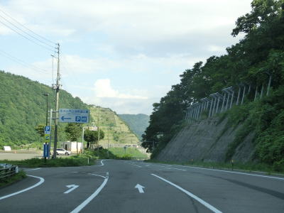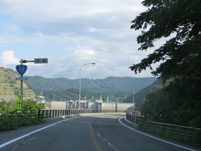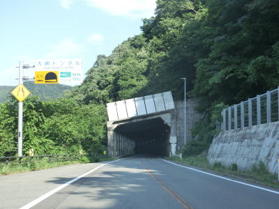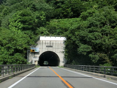 | 対面2車線道路に戻ると大網トンネルをくぐる。南側の坑口には短い大網スノーシェッドが繋がっている。トンネルを出てすぐに山形r351大網交差点を通過する。r351と反対の南に接続している市道へ進むと月山ダムに行く事ができる。大網橋で梵字川を渡って昔ながらのドライブインの前を通って朝日1号溝橋を渡る。橋の下には梵字川発電所の水圧鉄管がある。 | ||