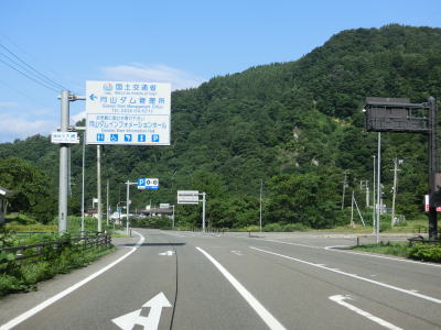 | 田麦俣交差点で月山道路に合流してからはセンターライン付きの2車線道路を走る。米山橋を渡った直後に田麦俣トンネルをくぐり、あさひ月山湖の湖畔を右にカーブした先であさひ月山湖展望広場の前を通る。 | ||
