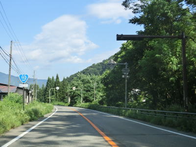 | 青龍寺川に架かる徒歩橋を渡った後に左側車線が減少し、その直後にR7・山形r350本田交差点に至る。案内標識にR112のおにぎりが表記されておらず、また一桁国道との交差点という事もあってこの交差点がR112の終点と思ってしまっても不思議ではないが、左折して新潟・村上方面のR7に重複している。終点のある酒田が直進方向に案内されているため、それに釣られないように注意を要する。 | ||