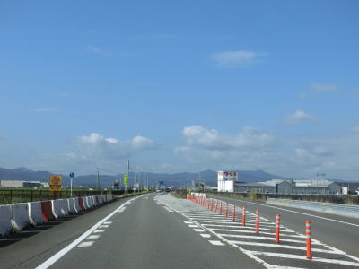 | 旧道と思われる山形r383との交差点を過ぎると片側2車線道路になる。旧道は案内標識ではr383のヘキサが表記されているが、ウォっちずでは県道として扱っていない。約700m走ると中央分離帯がなくなる。 | ||