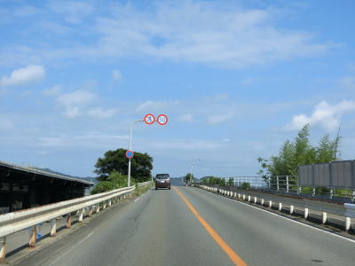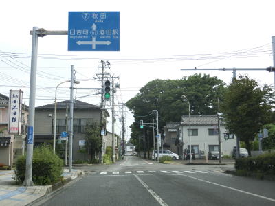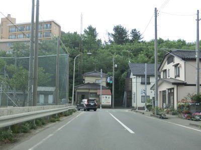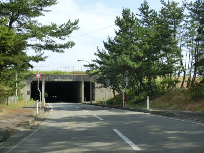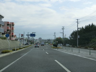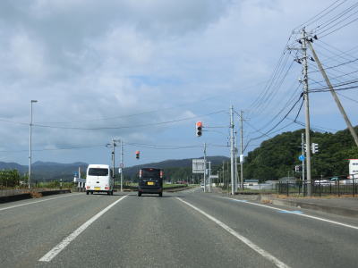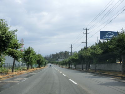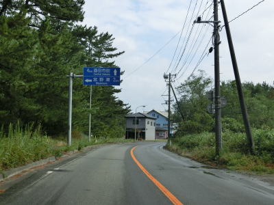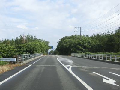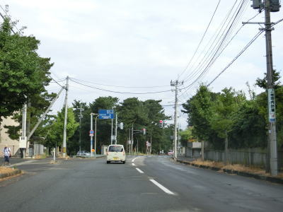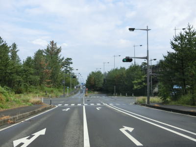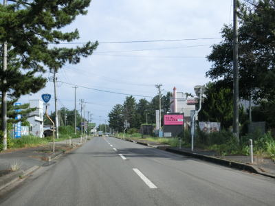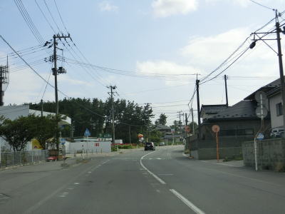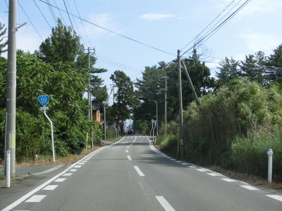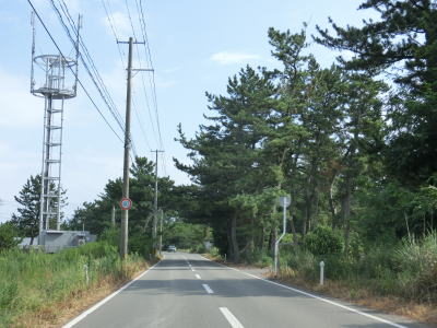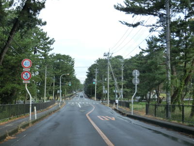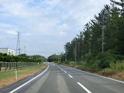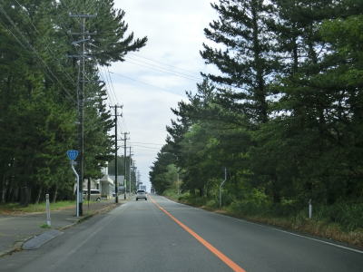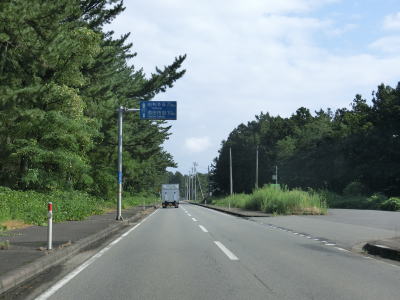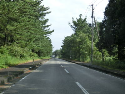 | 防風林の松並木の間を走っていると市道との交差点を右折して秋田方面に進む。路側帯と車線幅の広い2車線道路を走っていると緩やかな勾配を上って市道との交差点を通過する。以降は路側帯と車線幅が狭くなるがごく普通の対面2車線道路なので走りにくいという事はない。 | ||