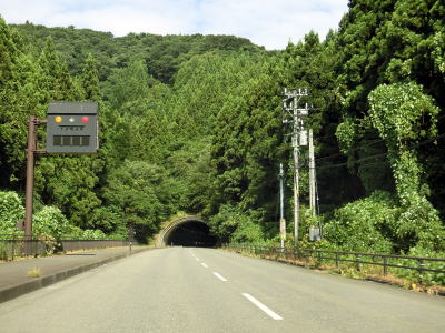 | 山形r336交差点からは車線幅の広い2車線道路を上って加茂坂トンネルをくぐる。東に旧道の加茂隧道があるが、トンネルの両側の坑口付近は閉鎖されているため通り抜ける事はできない。トンネルを出てすぐに旧道との交差点を通過して6%の勾配を下る。 | ||